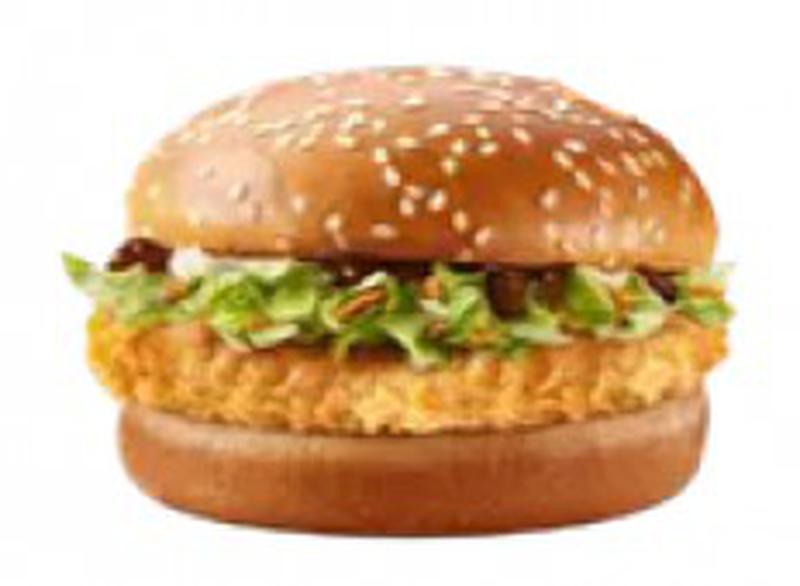Состав: Сочная и пикантная куриная котлета в хрустящей панировке, салат айсберг, жареный лук, специальный соус и карамелизированная булочка с кунжутом, политая подкопчённым, солоновато-сладким Сычуаньским соусом.