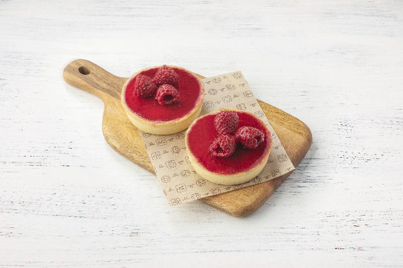 Состав: тесто песочное (мука пшеничная в/с, маргарин, яйцо куриное столовое, сахарный песок, масло сливочное, соль), крем сметанный (сметана 30%, сливки 34%, сахар, желатин, вода), желе малина (малина, сахар, желатин, ароматизатор, краситель, вода), декор малина (малина крошка, сахар, желатин, краситель красный, ароматизатор), кондитерский гель.