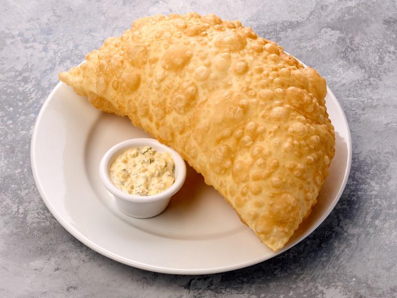 Состав: С фаршем из трески, жареным луком и укропом, подается с соусом тар-тар