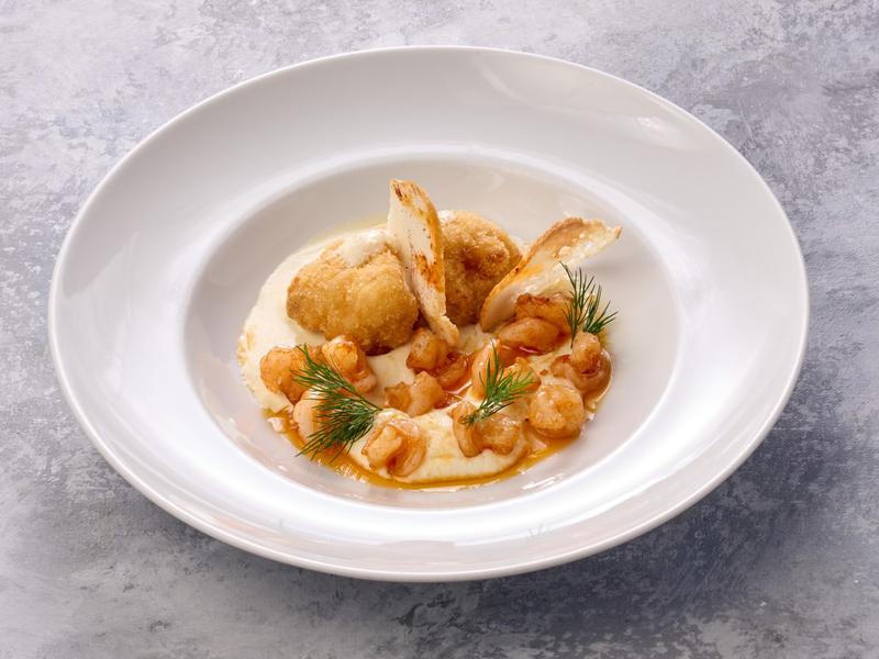 Состав: С пюре из сельдерея, цветной капустой-фри и соусом блю чиз