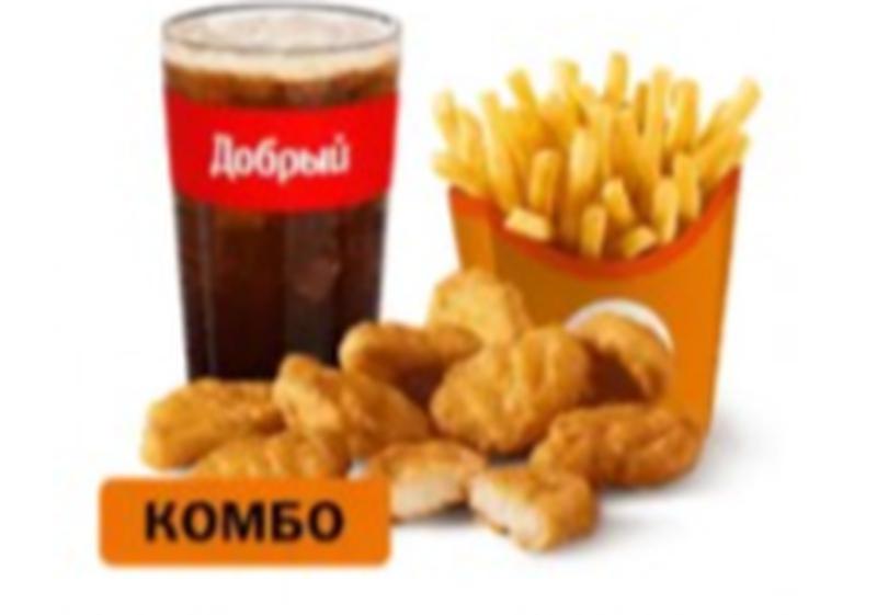 Состав: Большой Комбо состоит из Наггетсов (9 шт.), Картофеля на выбор и Напитка на выбор. Цена Комбо может меняться в зависимости от комплектации.