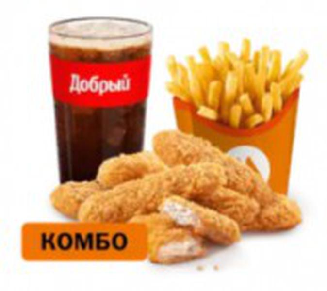 Состав: Большой Комбо состоит из Стрипсов (7 шт.), Картофеля на выбор и Напитка на выбор. Цена Комбо может меняться в зависимости от комплектации.