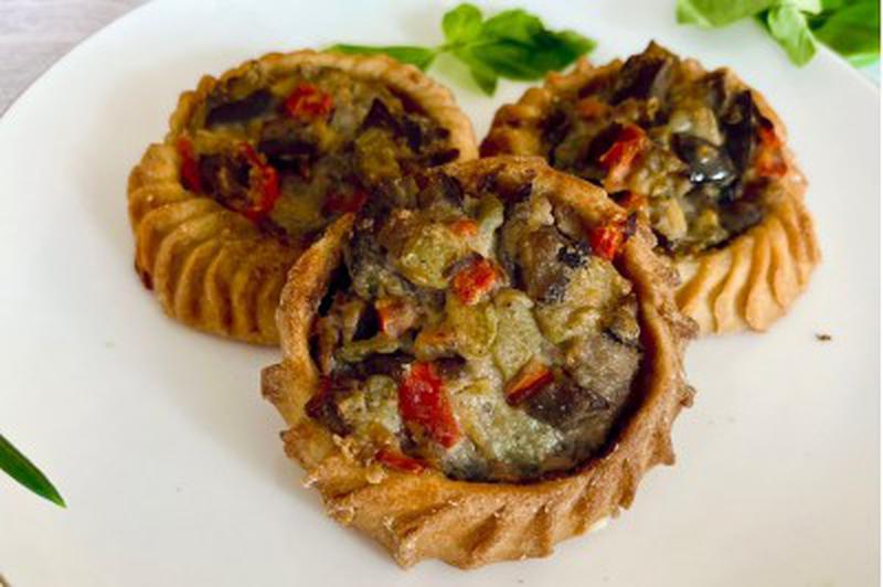 Состав: Перепечки выпекаются из бездрожжевого сдобного теста! Перепечки с баклажанами, перцем, кабачком и чесночком, с соусом бешамель на растительном молоке.
